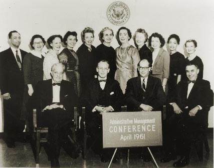 (front row) Donald J. Stocking, William Green, Francis Wheat, Hugh Owens, Manuel Cohen, Hamer Budge, Richard Smith, Thomas B. Hart, Arthur E. Pennekamp; (second row) Orval L. DuBois, W. Victor Rodin, David L. Ratner, Andrew Barr, Mahlon M. Frankhauser, Gerald E. Boltz, James E. Dowd, Alexander J. Brown, Jr., James E. Newton, Richard V. Bandler, Solomon Freedman, Irving M. Pollack, Roger S. Foster, Loughlin F. McHugh, Alfred Letzler, Walter P. North; (third row) Ralph L. Bell, Frank J. Donaty, Harry Pollack, Charles E. Shreve, Thomas W. Rae, David Ferber, Philip A. Loomis, Jr., Edmund H. Worthy, Robert H. Bagley, John A. Dudley, Eugene H. Rotberg, Lindsay J. Millard, Aaron Levy, Ernest L. Dessecker, William E. Becker